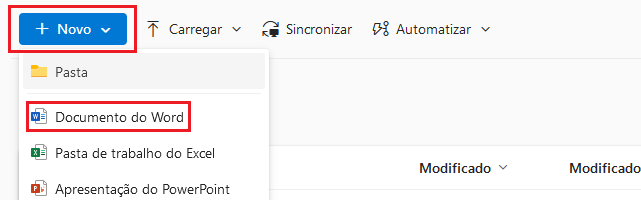 Selecione + Novo e Documento do Word. Você está criando este documento para ter algum conteúdo em sua lista Última Utilização.