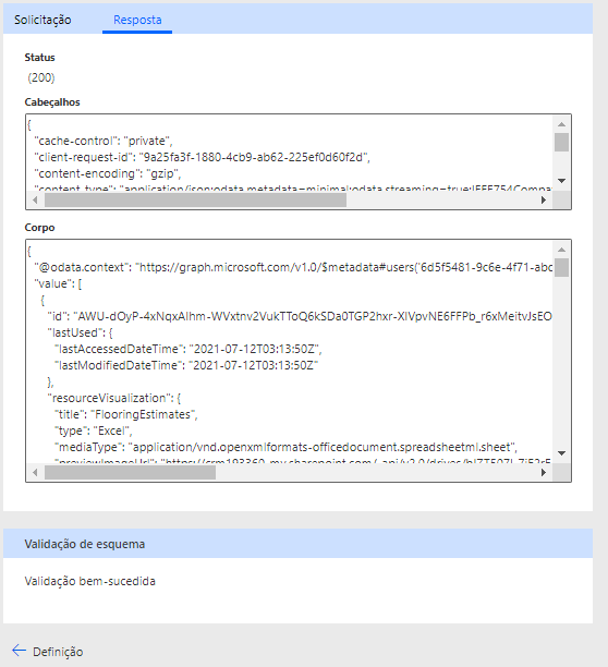 Você precisará dessa resposta mais tarde neste exercício, pois ela será usada na configuração da resposta no conector personalizado.