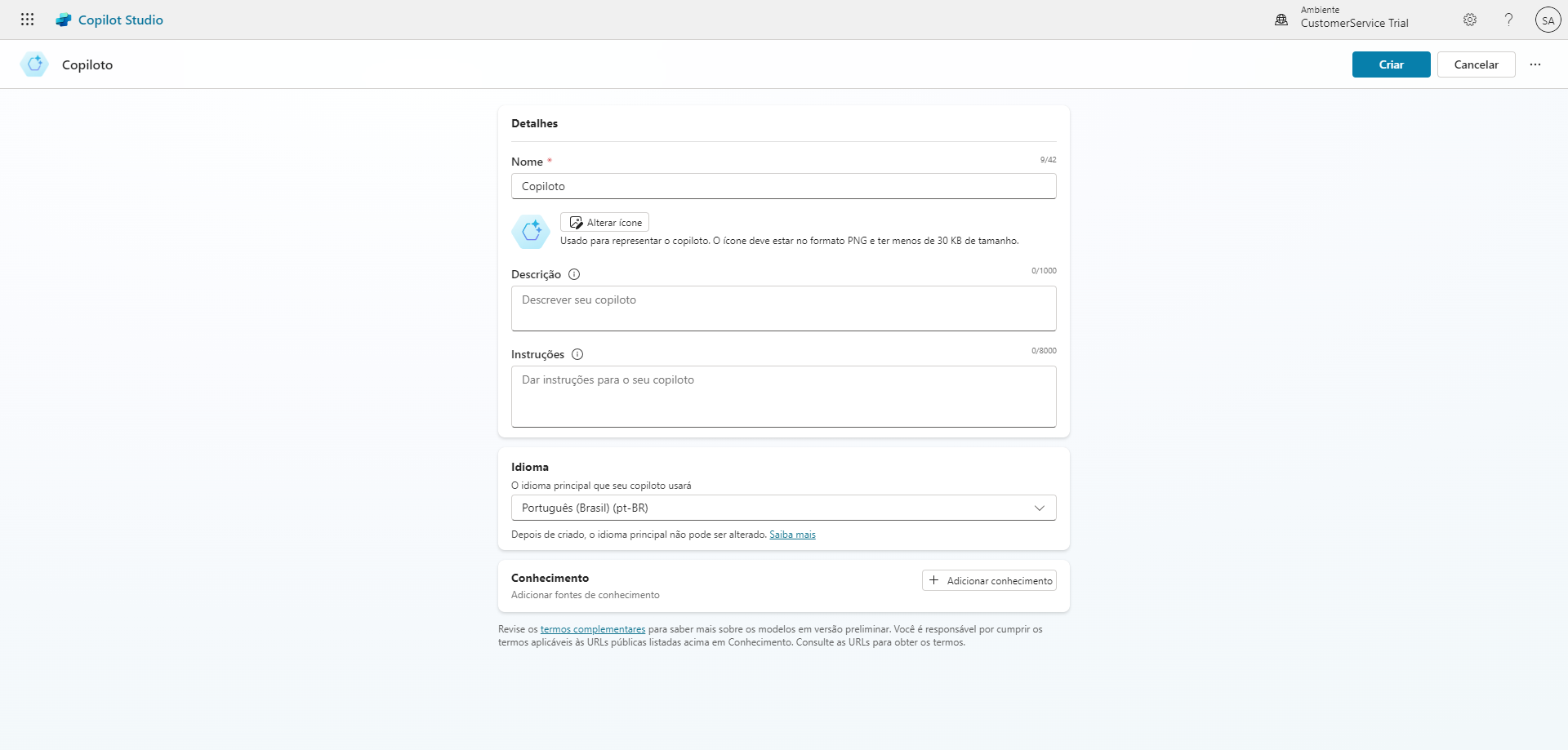 Exercício: criar agente no Microsoft Copilot Studio com os novos recursos de IA