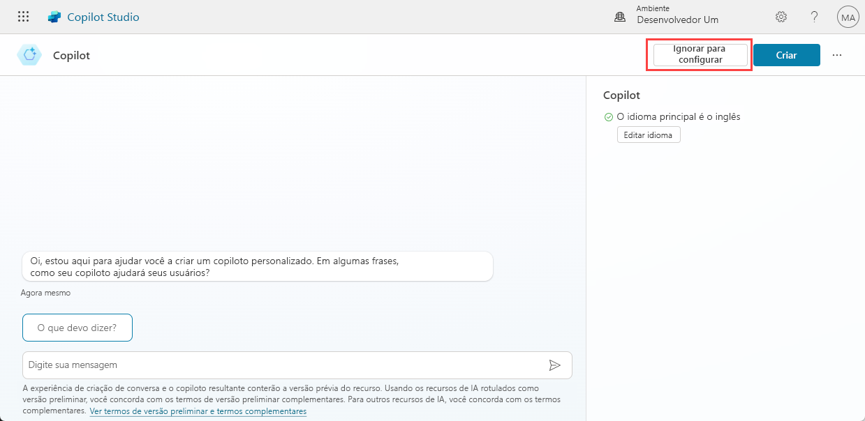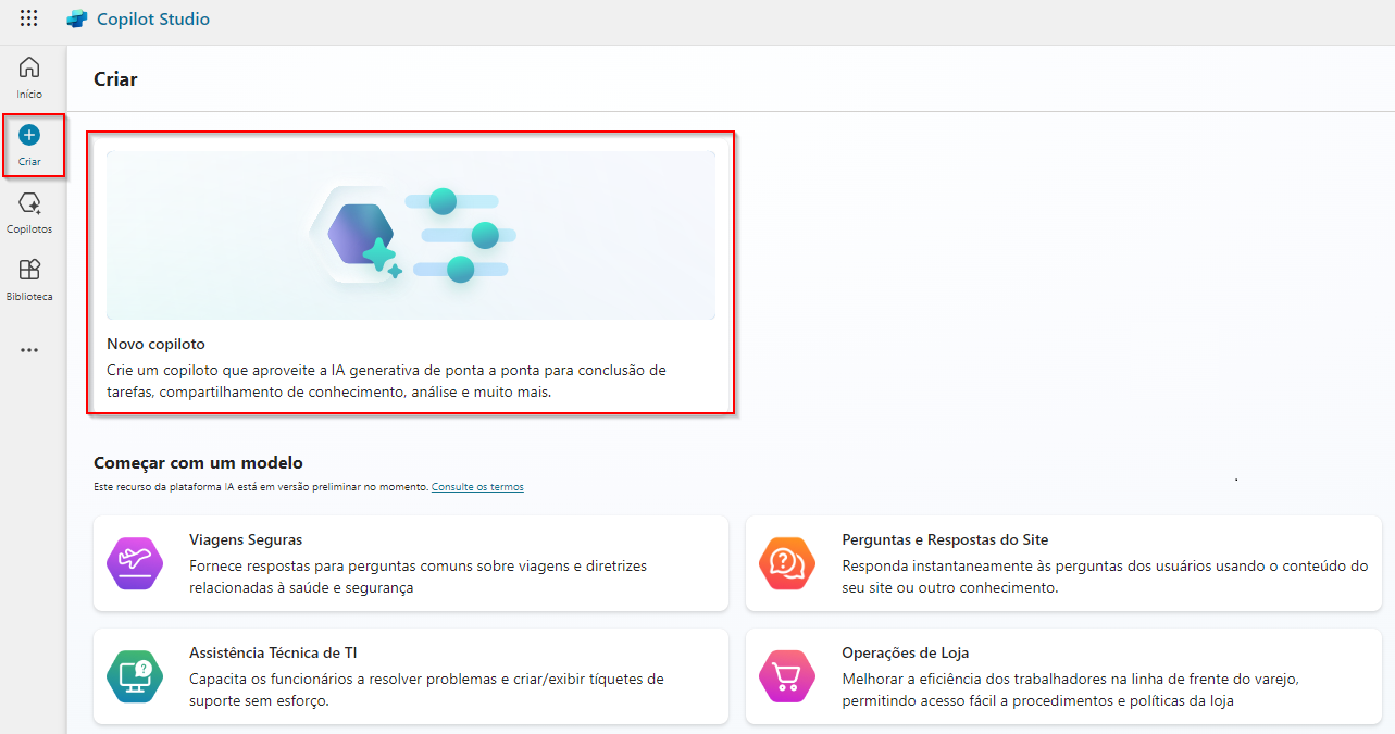 - Navegue até Microsoft Copilot Studio.