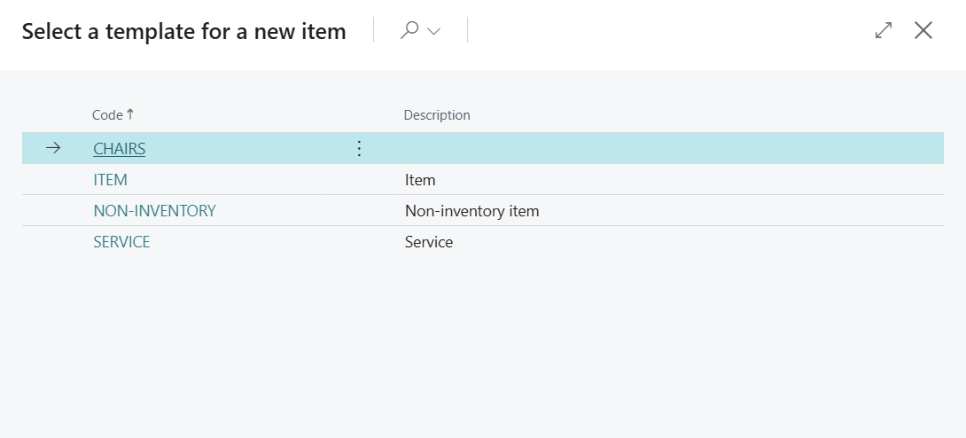Quando você seleciona um modelo, o Business Central insere automaticamente os valores pré-configurados no cartão de item para o novo item.