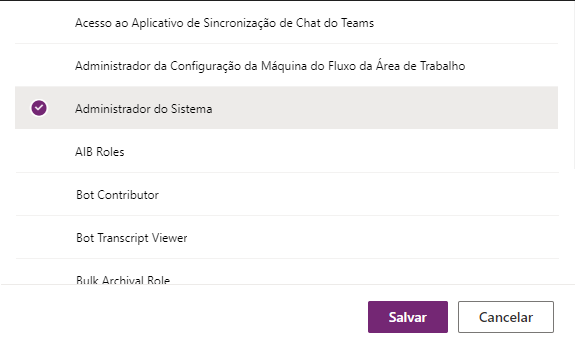 O mesmo painel Gerenciar direitos de acesso é exibido no lado direito da tela. Vamos atribuir ao usuário uma função de Administrador do Sistema. Podemos rolar a lista, localizar o Administrador do Sistema e marcar ao lado do nome da função.