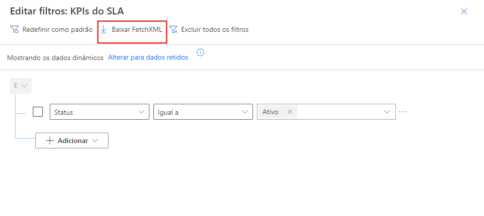 Se você estiver consultando dados e tiver um aplicativo baseado em modelo que inclua as tabelas que deseja consultar, o método mais simples para compor consultas FetchXML é usar a Localização Avançada, que contém uma função Download FetchXML. Você está limitado à interface do usuário para quais filtros e dados relacionados pode extrair, mas, em geral, é um excelente ponto de partida; portanto, você não precisa criar o XML por conta própria.