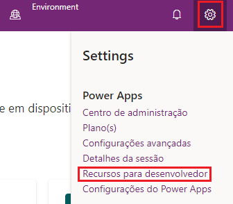 Selecione o botão Configurações de ambiente.