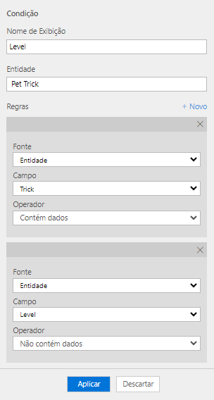 Em uma condição, você pode adicionar várias cláusulas com lógica AND ou OR.