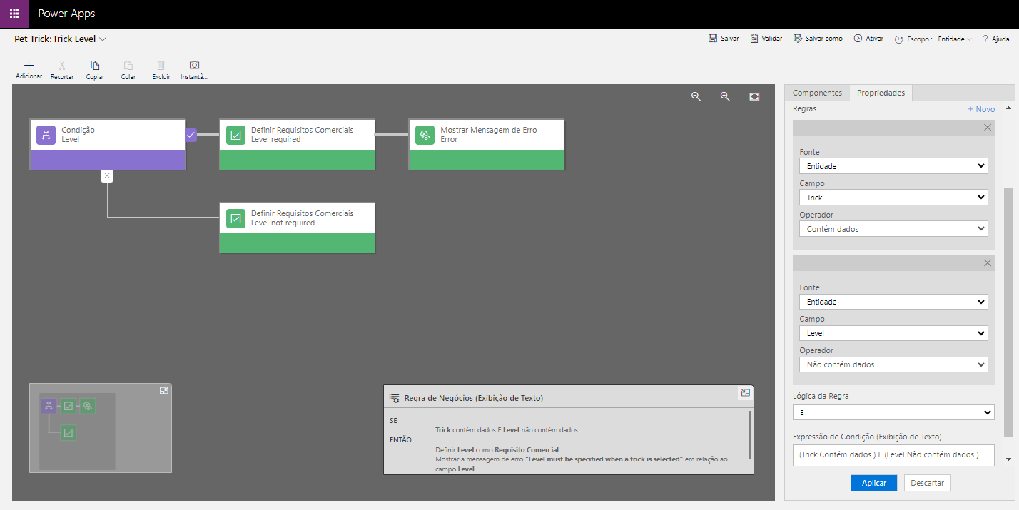 O editor de regras de negócios é uma ferramenta visual para arrastar e soltar a fim de criar e atualizar regras de negócios.