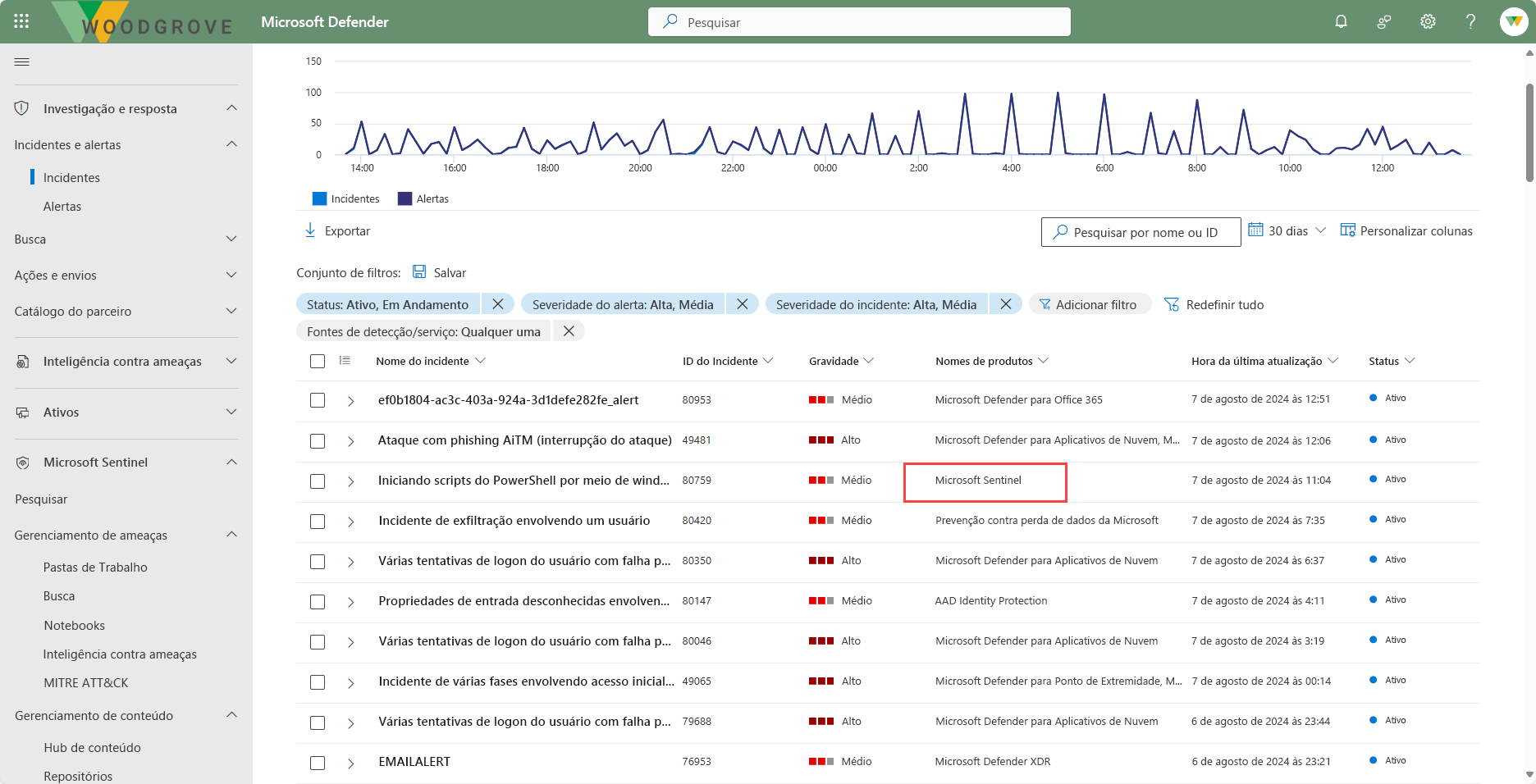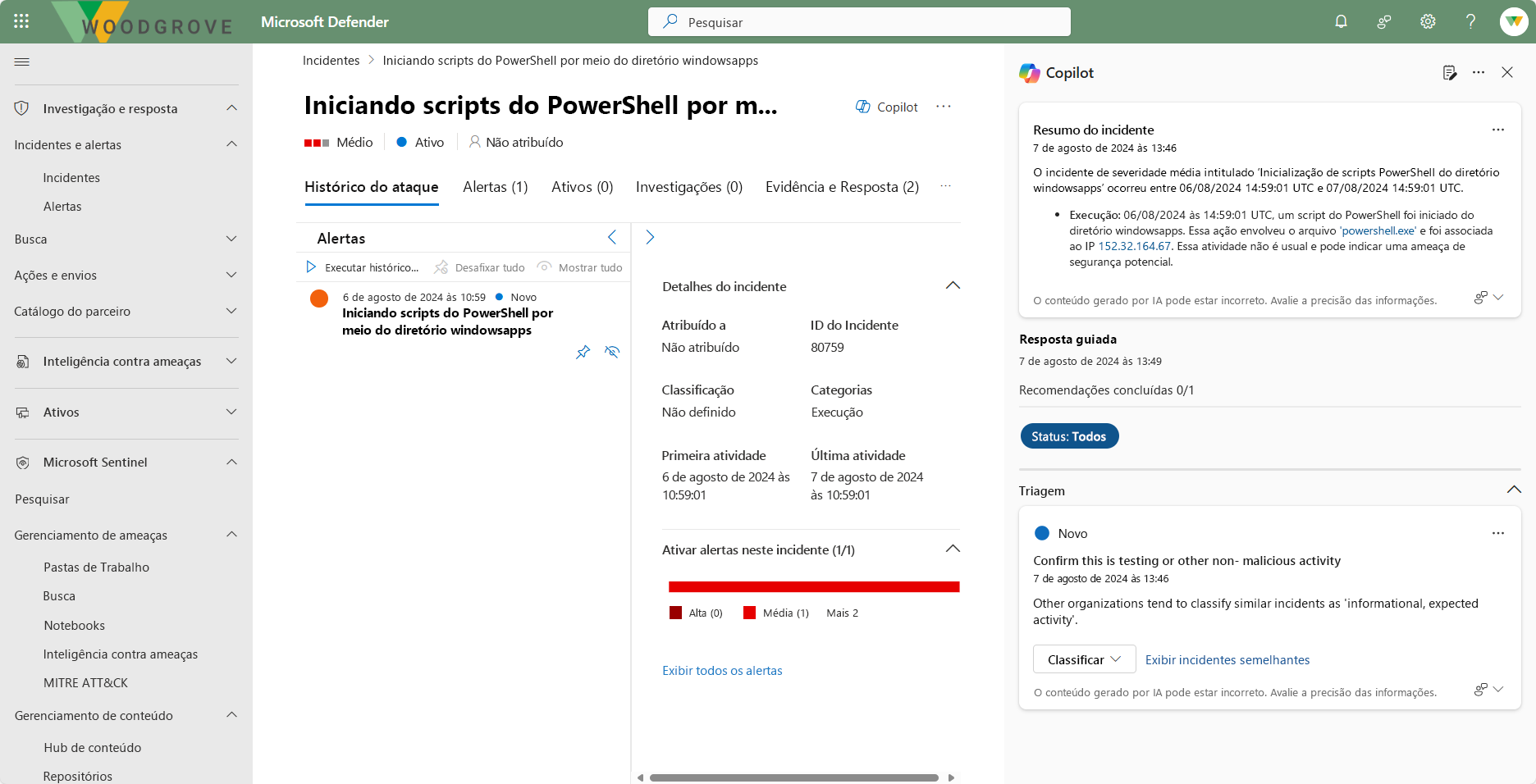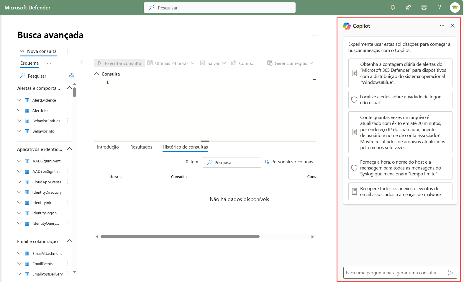 Incidentes: os incidentes do Microsoft Sentinel agora estão unificados com incidentes do Defender XDR; portanto, você pode usar o Copilot no Microsoft Defender para obter um resumo de incidentes, respostas guiadas e relatórios de incidentes dos incidentes do Sentinel.