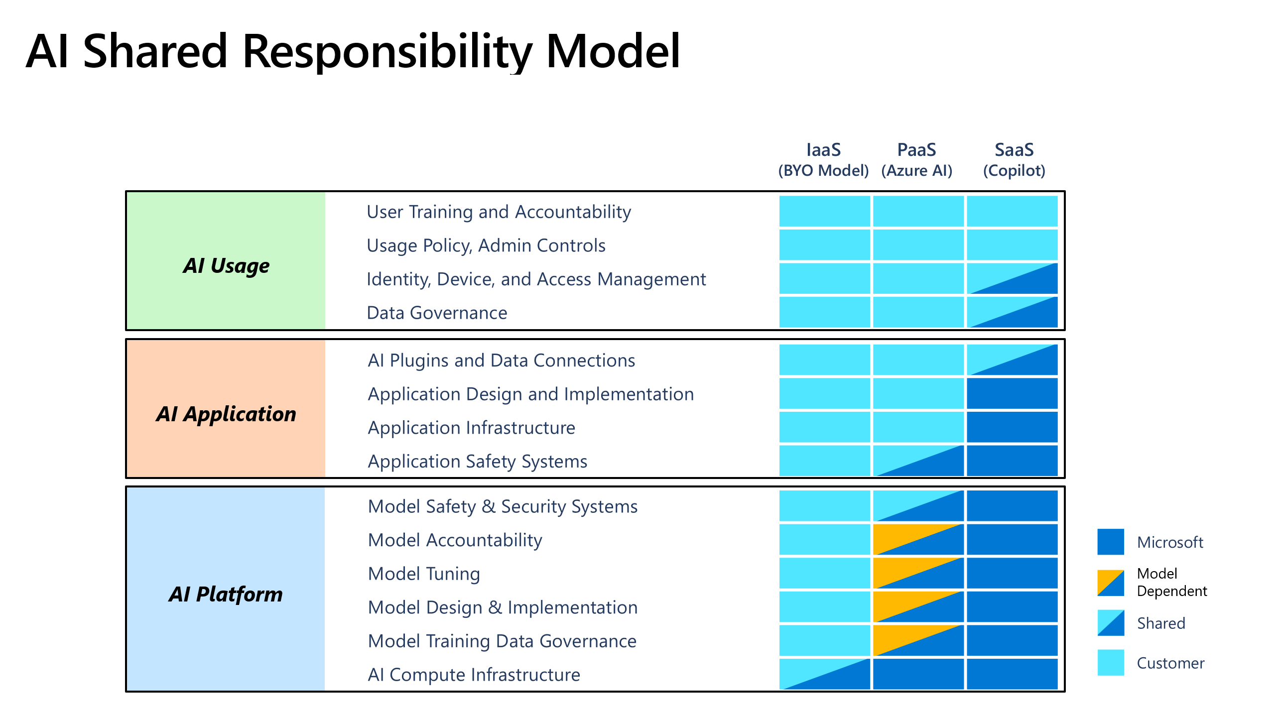 Mesmo quando o provedor protege a plataforma de IA, você é responsável por como a IA é usada em toda a sua organização: