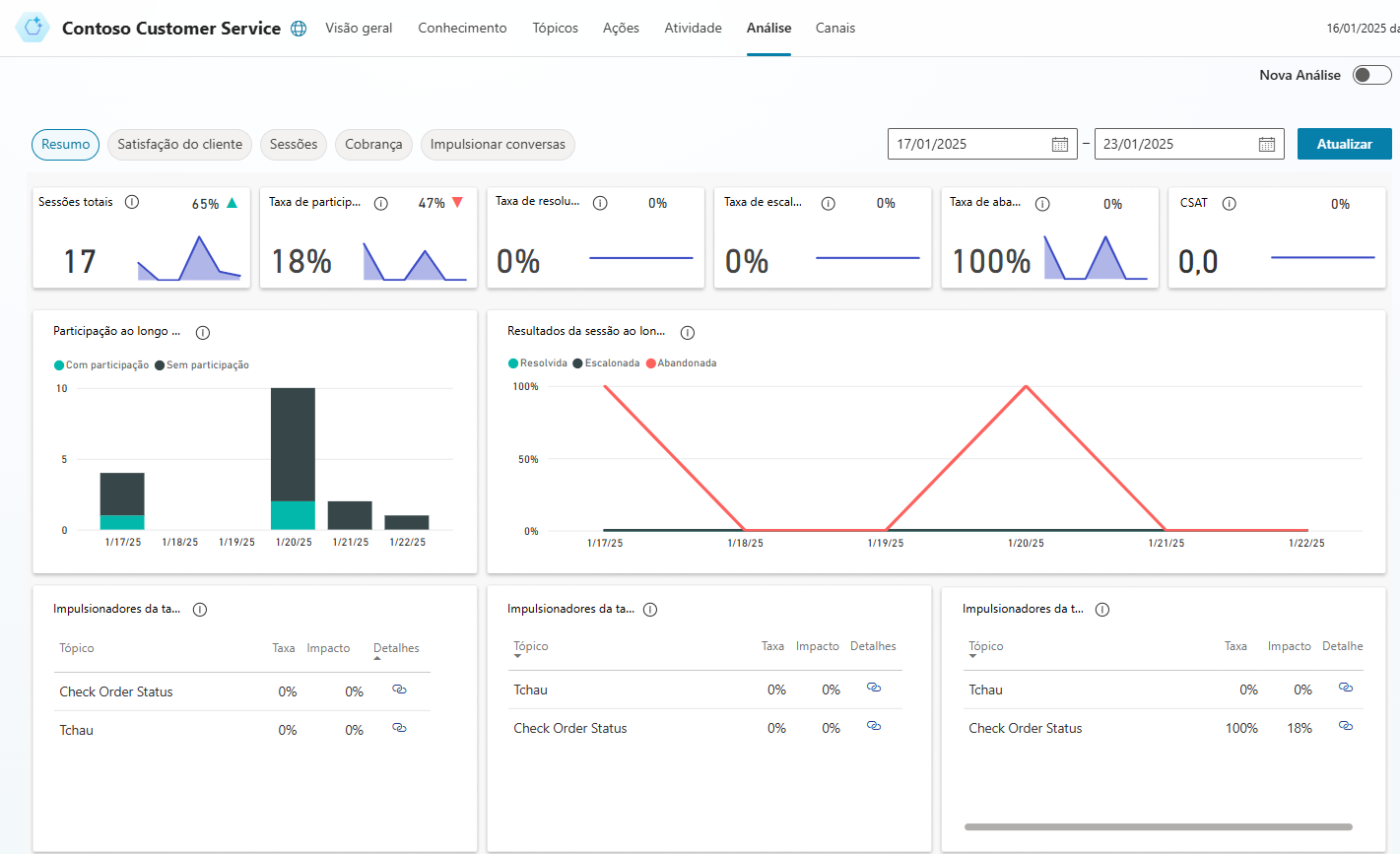 Para obter mais informações, consulte Analisar a satisfação do cliente.