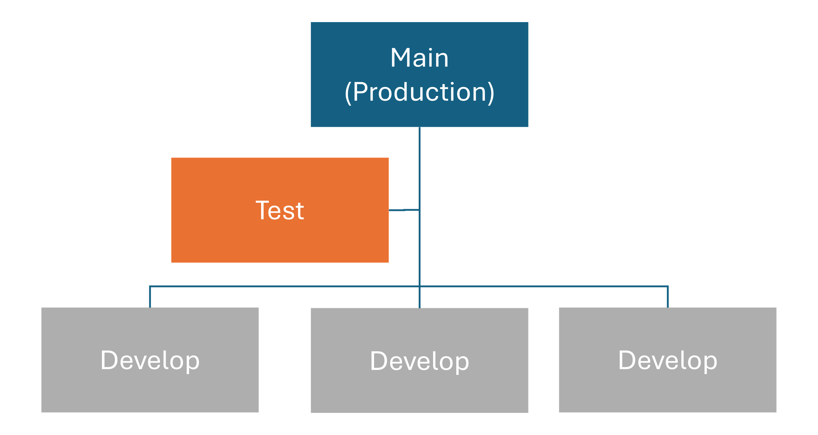 - Ramificação de desenvolvimento: para código em desenvolvimento ativo, compartilhado entre desenvolvedores. Grandes equipes podem usar ramificações individuais para cada desenvolvedor.