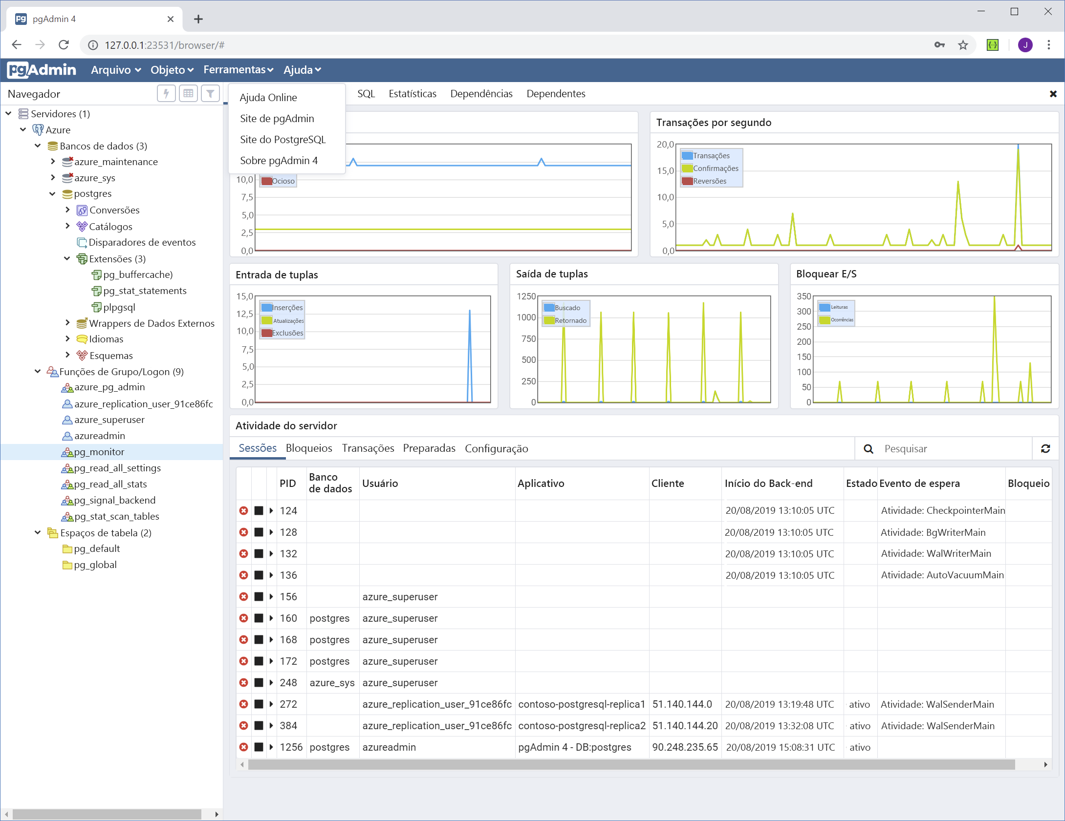 Ferramentas do Azure para o monitoramento do Banco de Dados do Azure para PostgreSQL