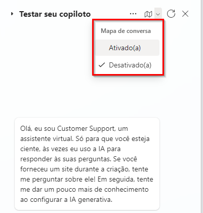 Ao testar as funcionalidades de resposta generativa, você deve fazer uma pergunta relevante para as fontes de dados que definiu para a IA Generativa, mas que não pode ser respondida por nenhum dos tópicos. Seu agente usa as fontes de dados definidas para encontrar a resposta correta. Depois que uma resposta for exibida, você poderá fazer mais perguntas de acompanhamento. O agente se lembra do contexto; portanto, você não precisa fornecer mais esclarecimentos. Por exemplo, se você fizer uma pergunta a um agente que estava conectado ao Microsoft Learn como fonte de dados: "Para que serve uma instrução IF no Microsoft Excel?" O agente retornará detalhes sobre a função de instrução IF. Se você então pedir: "Forneça um exemplo", o agente perceberá que você ainda está falando sobre o Microsoft Excel e fornecerá um exemplo.