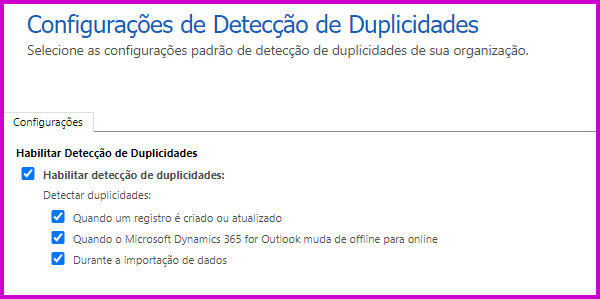 A detecção de duplicidades está habilitada no ambiente por padrão.