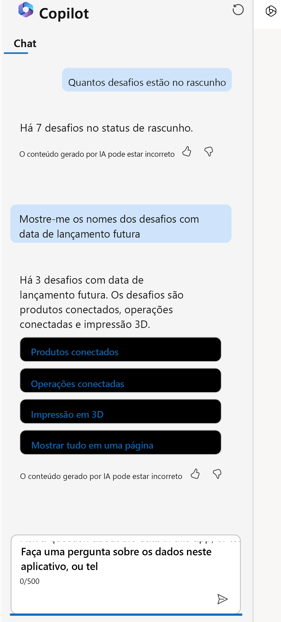 No painel Copilot exibido, faça perguntas sobre os dados em sua tabela.