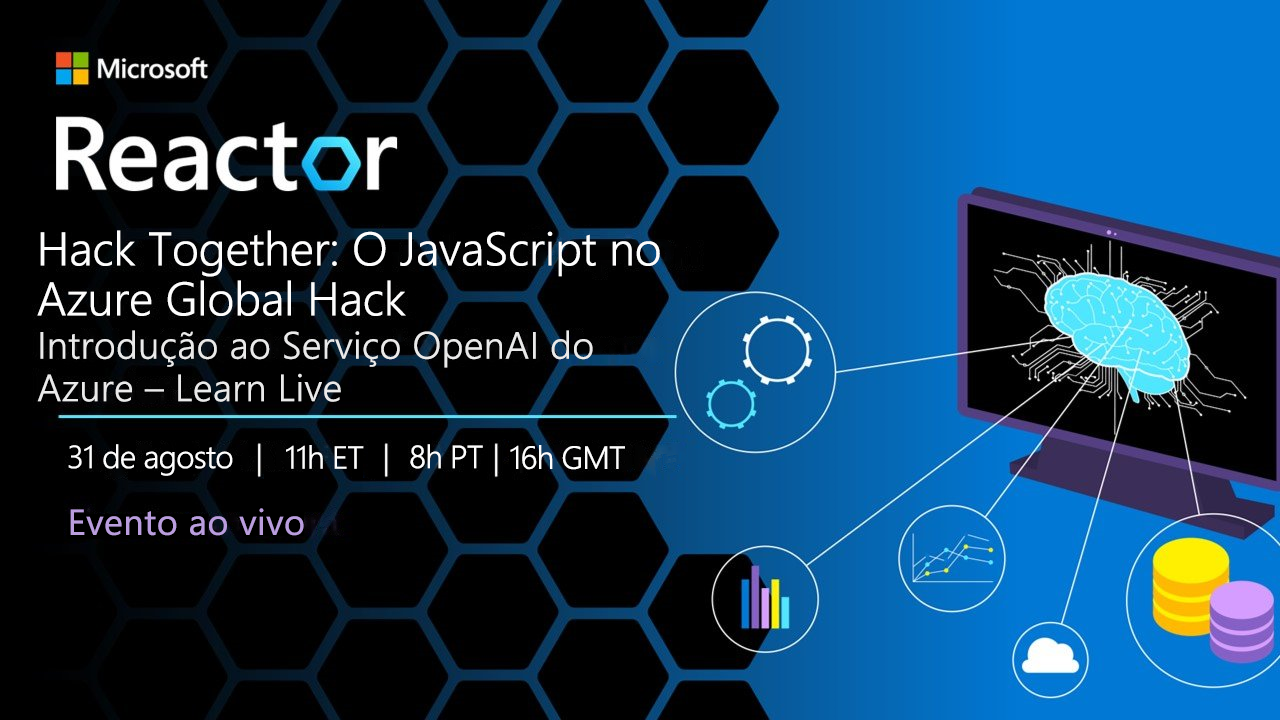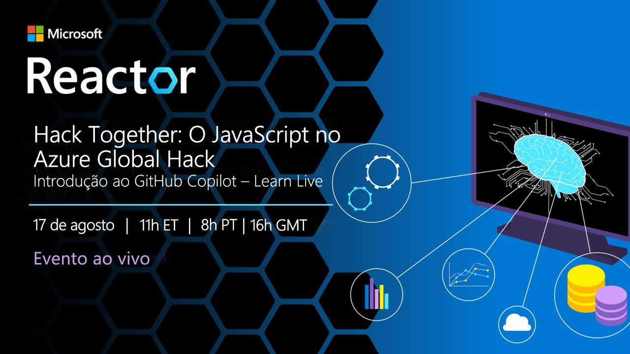 Junte-se ao “Hack Together”: o JavaScript no Azure Global Hack, uma experiência de hack virtual de 15 dias em que você aprende contribuindo para um aplicativo de ponta a ponta real com o Azure Functions, os Aplicativos Web Estáticos e o Azure Cosmos DB a partir de 16 de agosto.