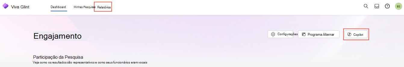 Passos de relatório antes de utilizar Copilot no Viva Glint