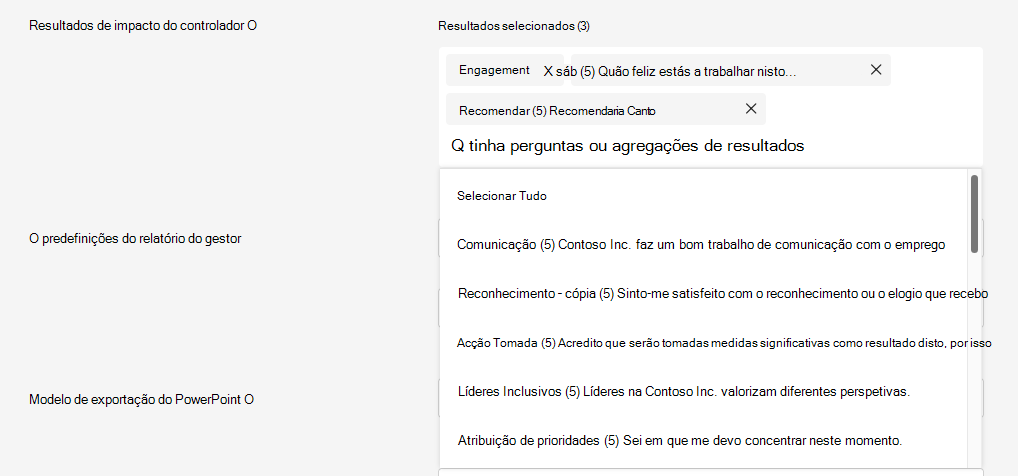 | Informações de Equipa Mais Abrangentes | Escolha se um resumo de alto nível dos resultados do inquérito desta função é visível para os respetivos relatórios diretos ou hierarquia de agregação. Saiba mais sobre o Broader Team Insights. |