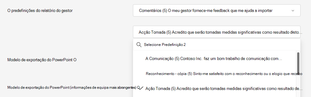 Selecione o modelo de Exportação do PowerPoint do Team Insights mais amplo pretendido.