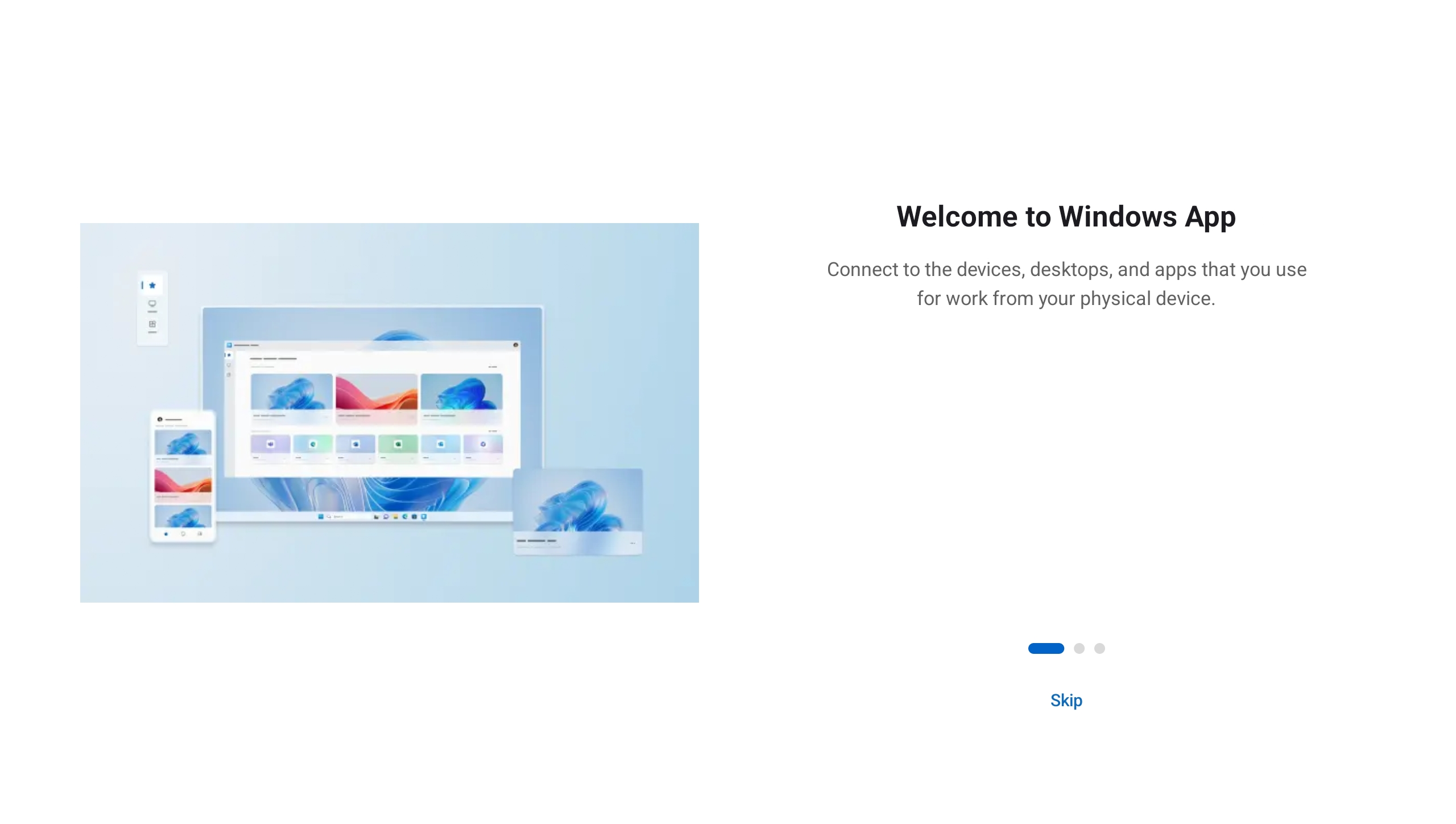 Use o Aplicativo Windows para se conectar remotamente aos seus dispositivos e aplicativos do Windows da Área de Trabalho Virtual do Azure, do Windows 365, do Microsoft Dev Box, dos Serviços de Área de Trabalho Remota e dos Computadores.