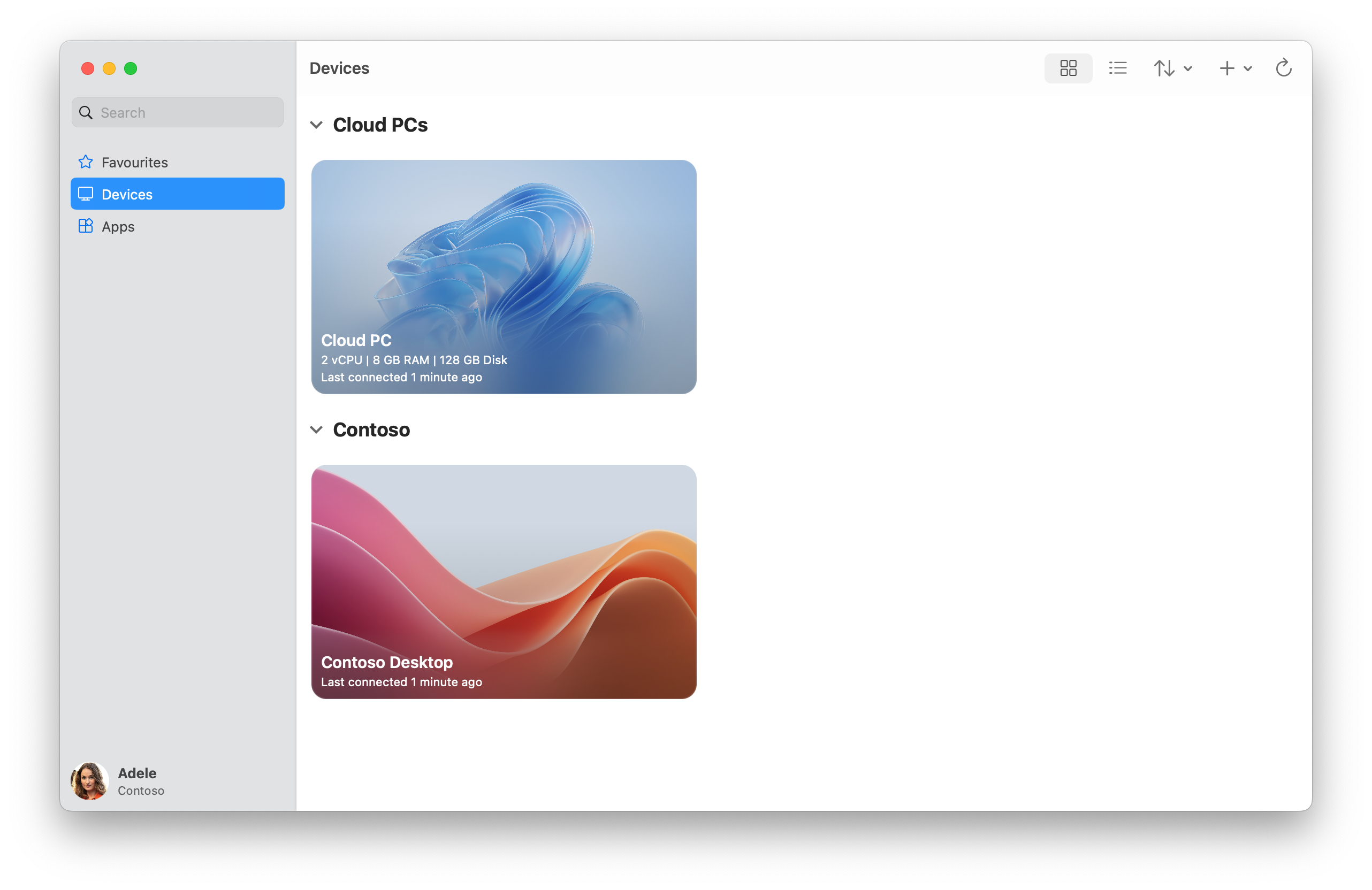 Para se conectar aos seus dispositivos e aplicativos do Windows 365 no macOS, siga estas etapas: