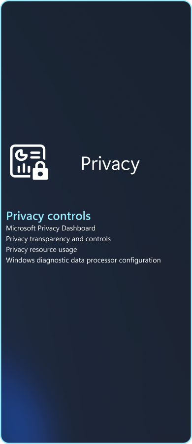 A privacidade é uma prioridade importante para indivíduos e organizações e o aumento da IA está a colocar o foco ainda mais nítido. O Windows fornece controlos de privacidade que podem ser facilmente acedidos na aplicação Definições ou no tabuleiro do sistema de ambiente de trabalho para voz, localização, calendário, microfone, histórico de chamadas e muito mais. Os utilizadores também podem encontrar mais informações e gerir definições de privacidade para aplicações e serviços Microsoft ao iniciar sessão na conta dashboard.