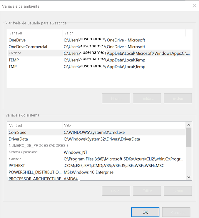 Abra Editar as variáveis de ambiente do sistema no Painel de Controle.