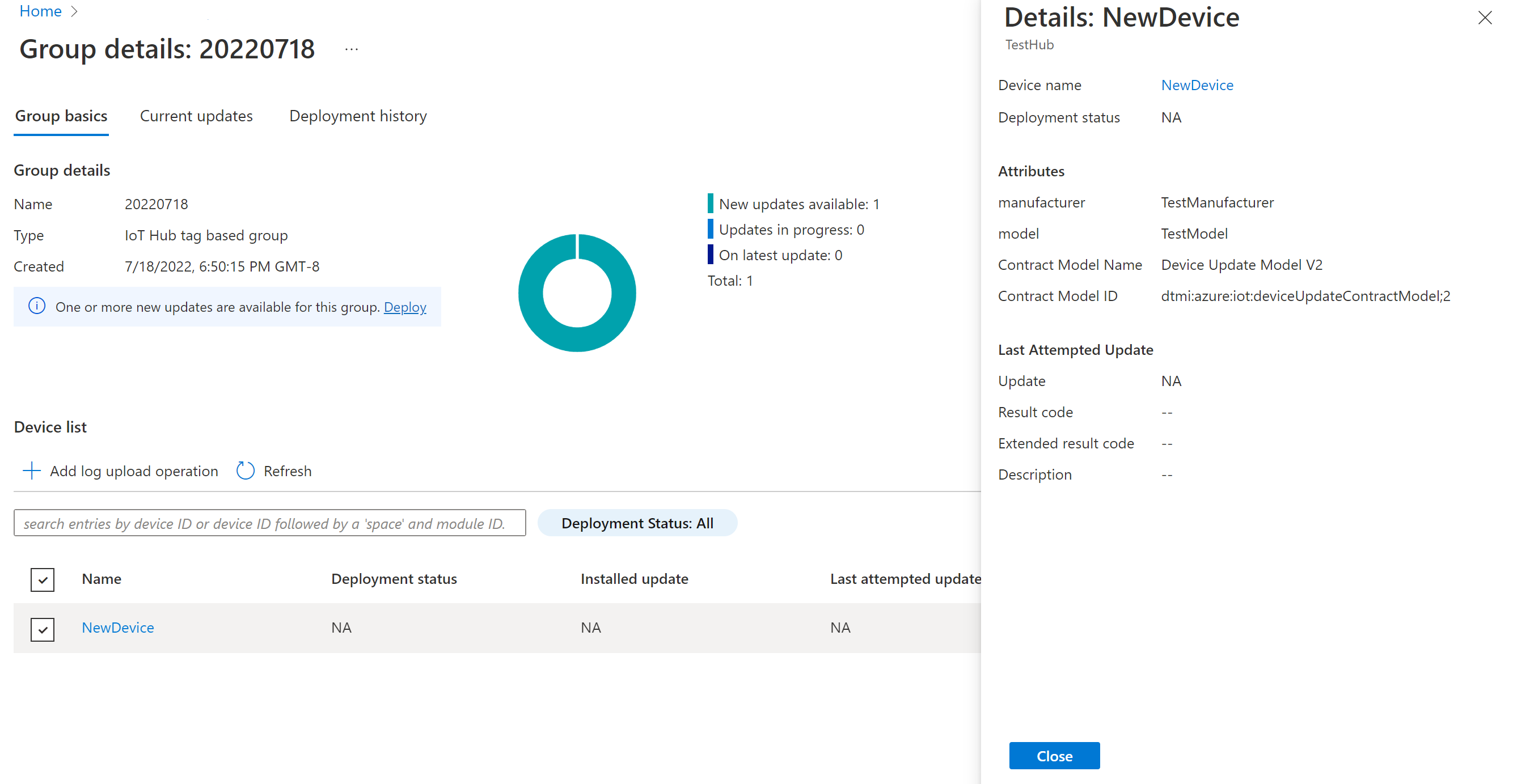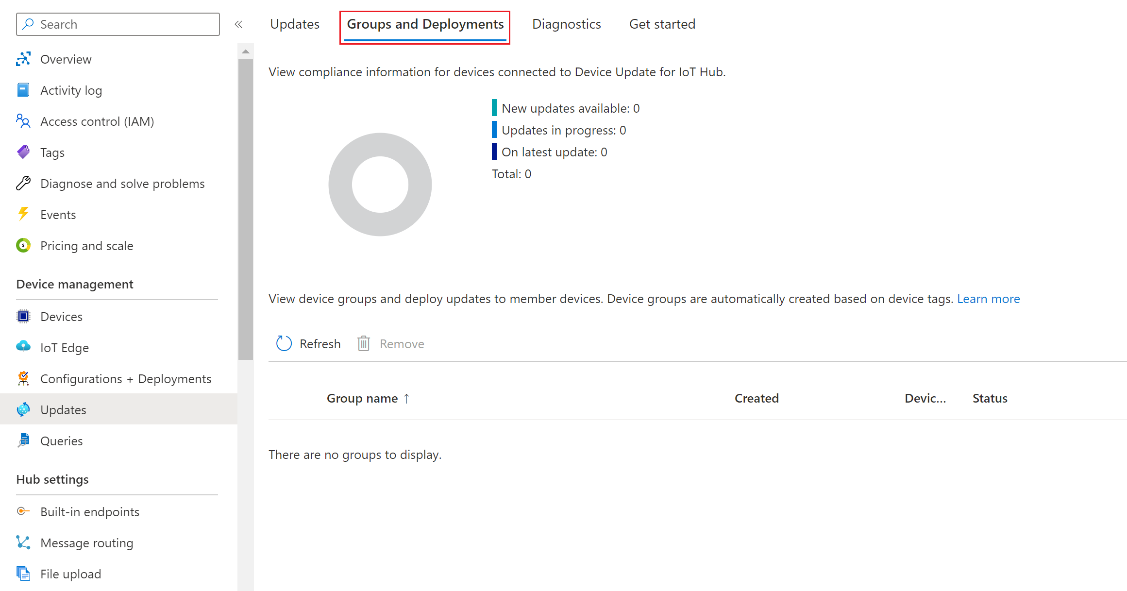 defaultgrupo. - Não deve ter dispositivos membros. Ou seja, nenhum dispositivo provisionado na instância de Atualização de Dispositivo pode ter uma