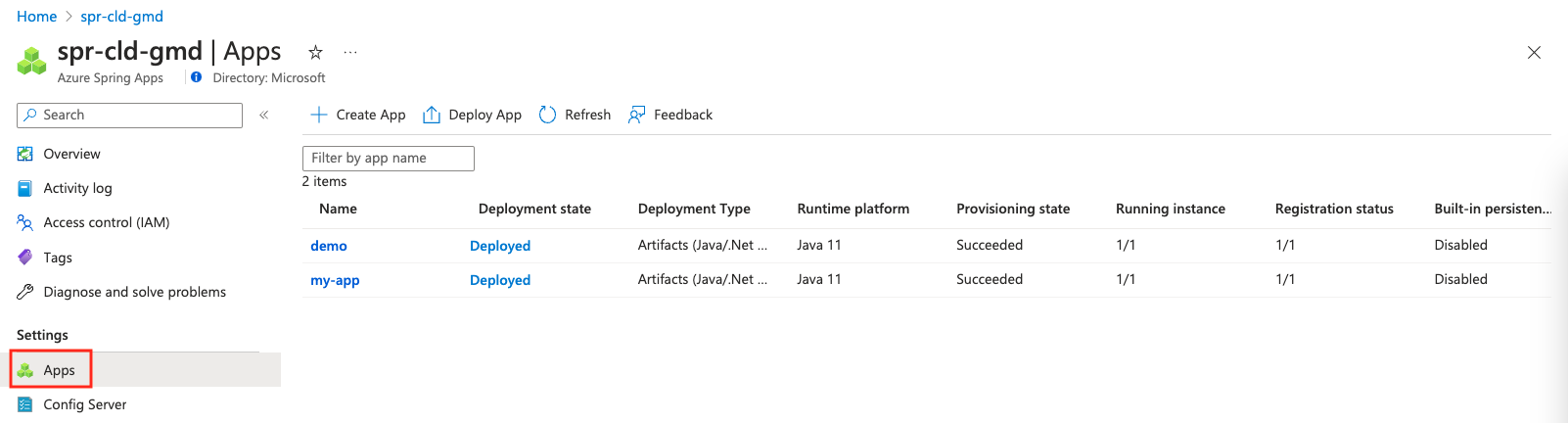 az spring app create \ --resource-group <resource-group-name> \ --service <Azure-Spring-Apps-instance-name> \ --name demo \ --runtime-version Java_17 \ --assign-endpointImplante o aplicativo no Azure Spring Apps: