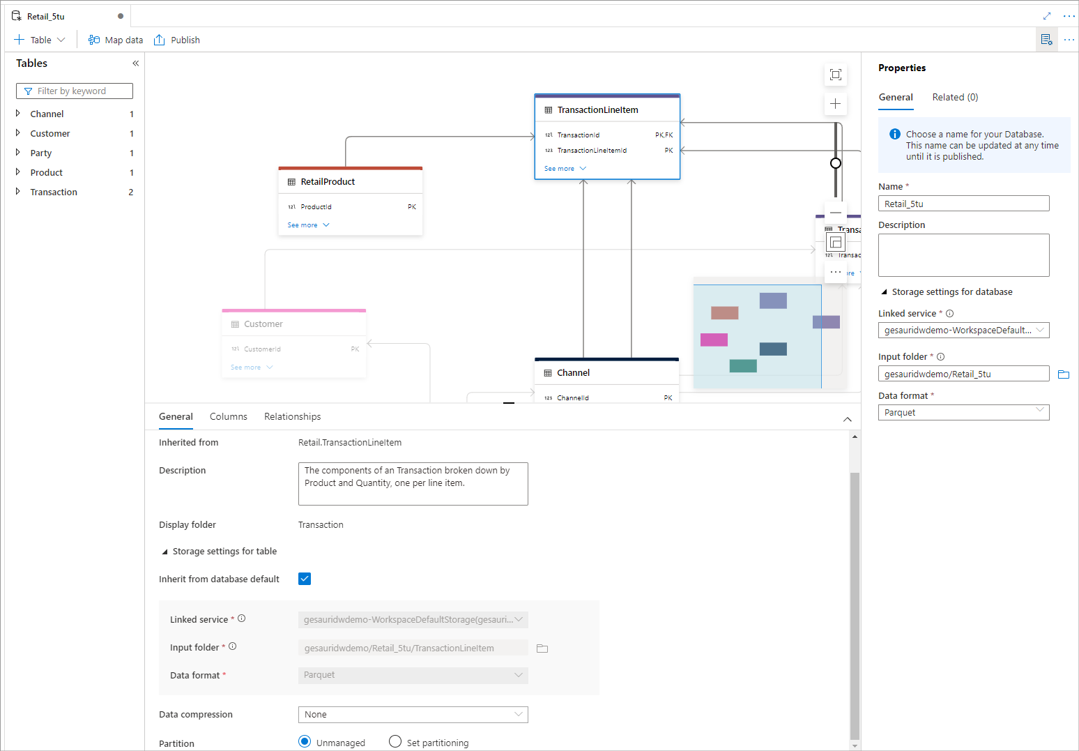 Para salvar seu layout e disponibilizá-lo no Azure Synapse, publique todas as alterações. Esta etapa conclui a configuração do banco de dados lake e o disponibiliza para todos os componentes dentro e fora do Azure Synapse Analytics.
