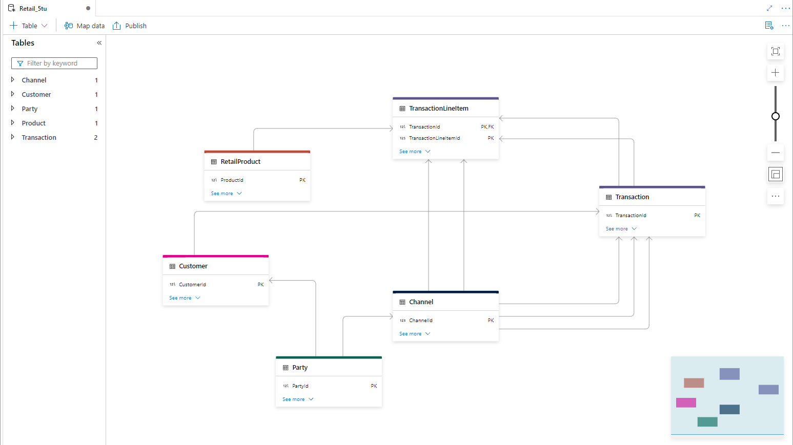 Para o nosso cenário, usaremos o Retail modelo de banco de dados e selecionaremos as seguintes entidades: