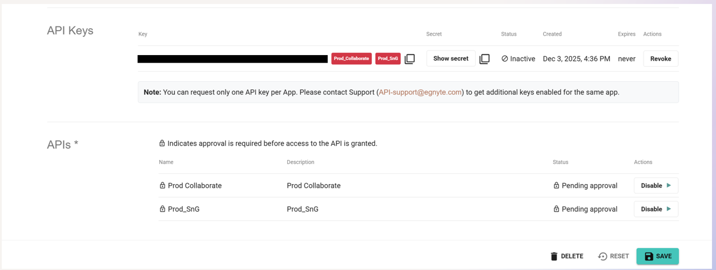 - Prod Collaborate: API REST Pública do Egnyte