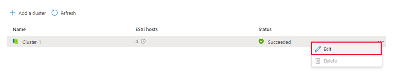 Selecione o cluster que deseja dimensionar, selecione Mais (...) e, em seguida, selecione Editar.