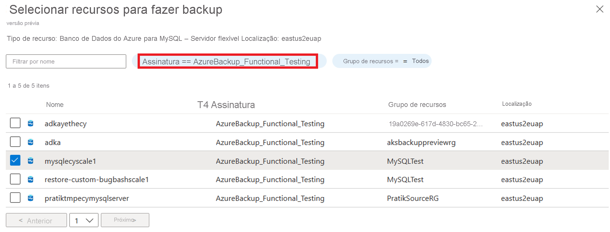 Pode escolher um servidor flexível Azure Database for MySQL entre subscrições se estiver na mesma região do vault.