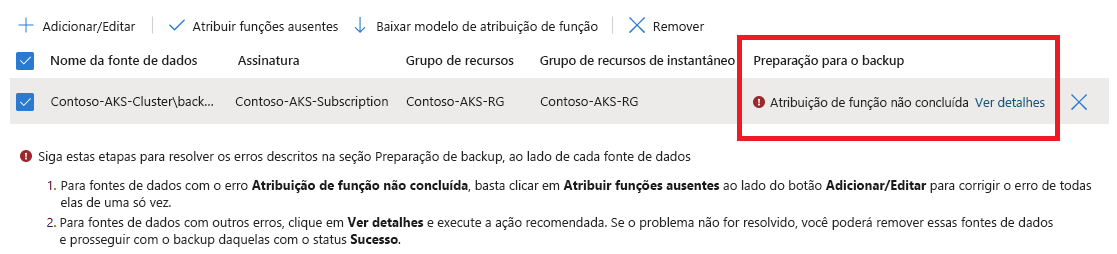 To resolve the error, under Datasource name, select the datasource, and then select Assign missing roles.