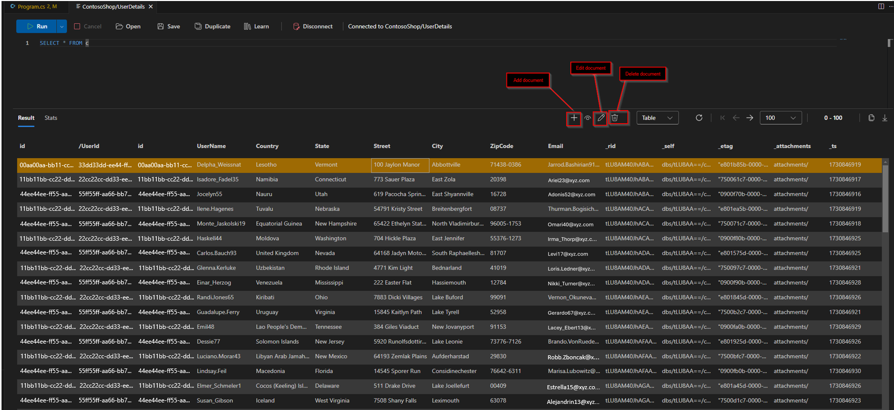 - Acesse as opções de edição de documentos diretamente na "Visualização da coleção". Esses controles estão convenientemente localizados acima da visualização de dados para facilitar o acesso.