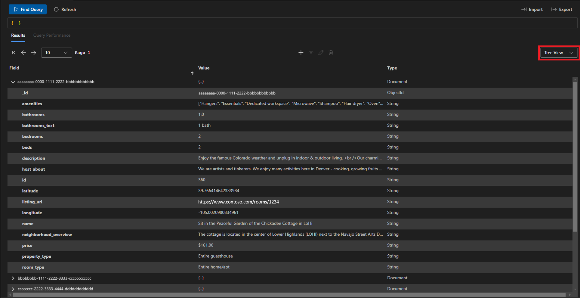 Visualização de tabela: digitalize rapidamente os dados e faça drill down em documentos aninhados.