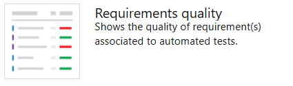 Widget configurável que pode ser utilizado para monitorizar a qualidade continuamente a partir de um pipeline de compilação ou lançamento. O widget mostra o mapeamento entre um requisito e os resultados de teste mais recentes executados em relação a esse requisito. Ele fornece informações sobre a rastreabilidade de requisitos. Por exemplo, requisitos que não atendem à qualidade, requisitos não testados, e assim por diante.