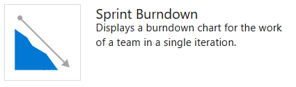 Exibe um gráfico de burndown que pode ser configurado para abranger uma ou mais equipas, tipos de itens de trabalho e períodos temporais. Com ele, é possível criar um gráfico de burndown de lançamento, de sprint, ou qualquer gráfico de burndown que abranja equipas e sprints.