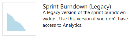 Além dos widgets listados aqui, você pode adicionar um gráfico de consulta de item de trabalho ao seu painel. Para obter mais informações, consulte Acompanhar o progresso com gráficos baseados em consultas de status e tendência.