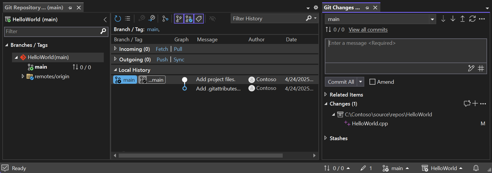 Para obter mais informações, consulte Experiência do Git no Visual Studio e Comparação lado a lado do Git e do Team Explorer.