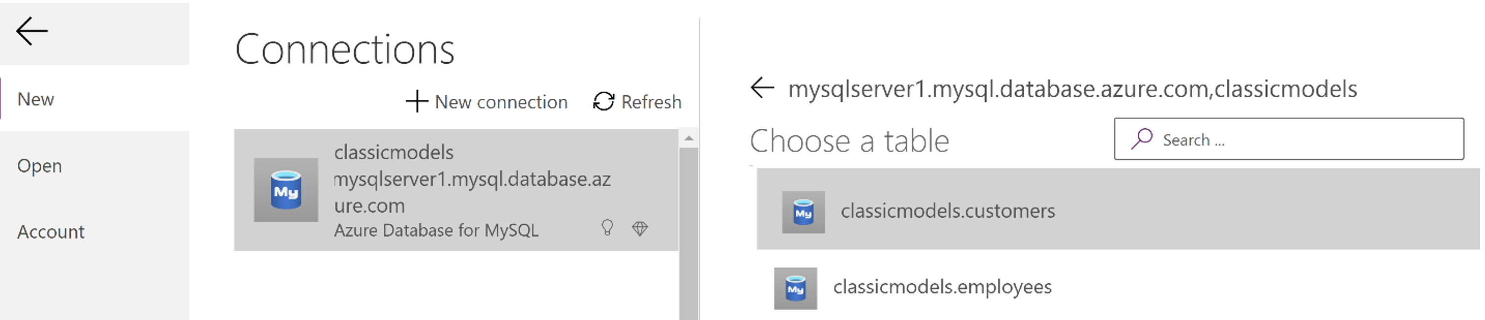 As conexões recém-criadas são compartilháveis, de modo que, se um Power App for compartilhado com outro usuário, a conexão também será compartilhada. Além disso, você não precisa configurar um gateway de dados para se conectar ao servidor, pois é necessário se conectar a um servidor MySQL local.