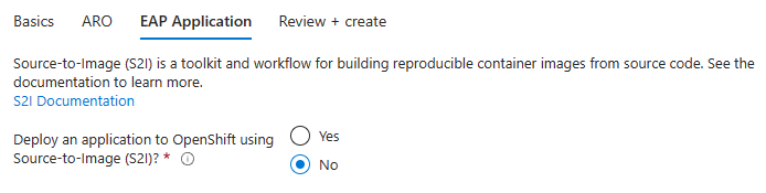 Deixe a opção padrão de Não para implantar um aplicativo no OpenShift usando Source-to-Image (S2I)?.