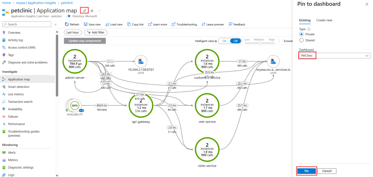 Nome do teste URL O conteúdo deve conter admin-serverhttps://<your-Azure-Spring-Apps-instance-name>-admin-server.azuremicroservices.io/actuator/health/livenessUPcustomers-servicehttps://<your-Azure-Spring-Apps-instance-name>-api-gateway.azuremicroservices.io/api/customer/actuator/health/livenessUPvets-servicehttps://<your-Azure-Spring-Apps-instance-name>-api-gateway.azuremicroservices.io/api/vet/actuator/health/livenessUPvisits-servicehttps://<your-Azure-Spring-Apps-instance-name>-api-gateway.azuremicroservices.io/api/visit/actuator/health/livenessUP