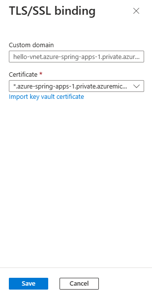 Antes de executar esta etapa, verifique se você preparou seus certificados e os importou para o Azure Spring Apps. Para obter mais informações, consulte Mapear um domínio personalizado existente para o Azure Spring Apps.