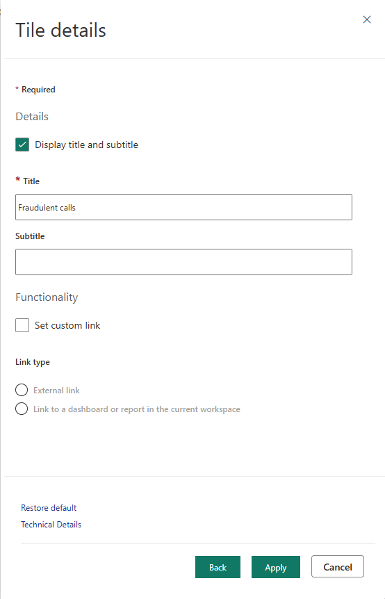 Introduza um nome para o mosaico (por exemplo, Chamadas fraudulentas) e, em seguida, selecione Aplicar para criar o mosaico.