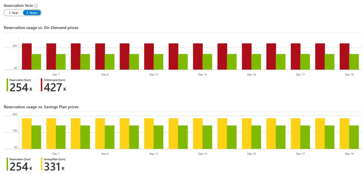 - A Simulação de Benefícios permite simulações de Planos de Poupança e compromissos de Reservas e coberturas com base no histórico de uso de Máquinas Virtuais sob demanda.