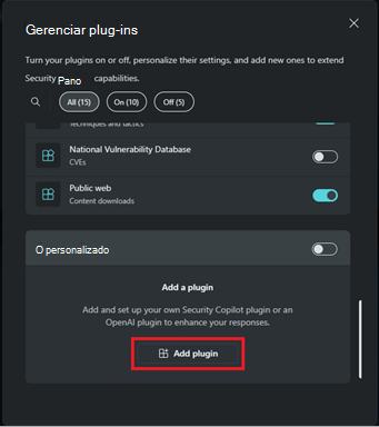 Role para baixo até Personalizado e selecione Adicionar plug-in.