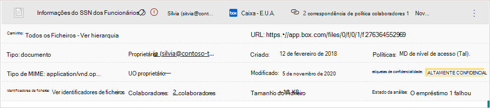 - A capacidade de aplicar etiquetas de confidencialidade como uma ação de governação a ficheiros que correspondam a políticas específicas
