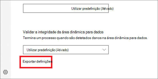 Na parte inferior da secção Proteção contra explots, selecione Exportar definições. Escolha a localização e o nome do ficheiro XML onde pretende que a configuração seja guardada.