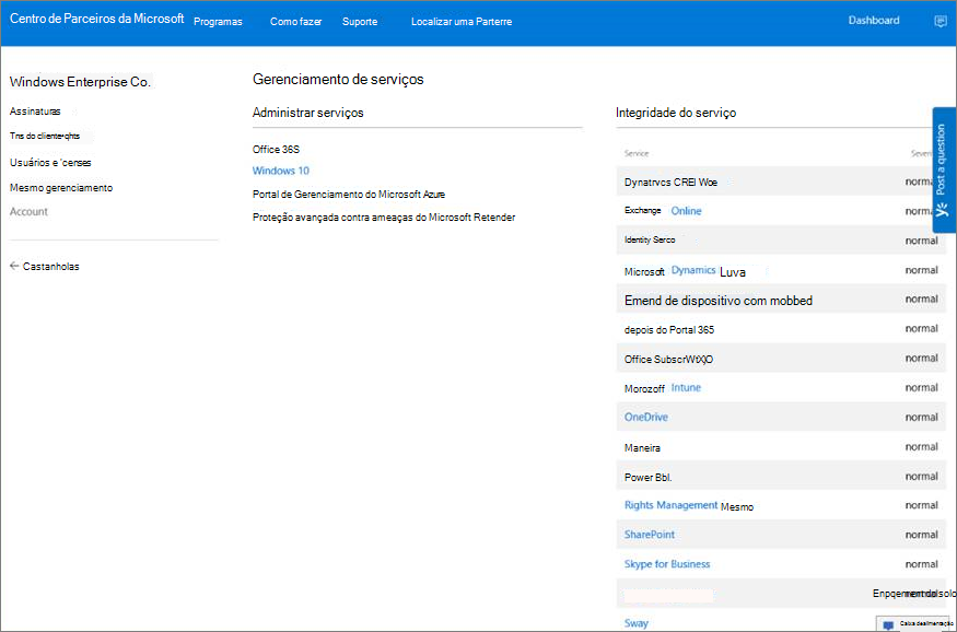 No Portal de parceiros, selecione Administrar serviços>Office 365.